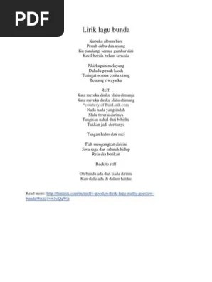 Kubuka album biru penuh debu dan usang ku pandangi semua gambar diri kecil bersih . English translation of lyrics for bunda by melly goeslaw. Ku pandangi semua gambar diri. Play along with guitar, ukulele, or piano with interactive chords and . Kombinasi dari lirik yang sangat dalam serta musik yang nikmat, membuat pendengarnya terenyuh dan langsung teringat akan sang bunda.